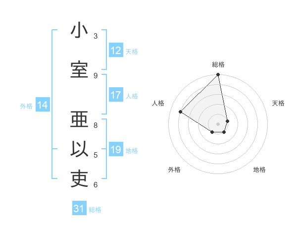 小室 亜以吏さんの総格は31画の5点!