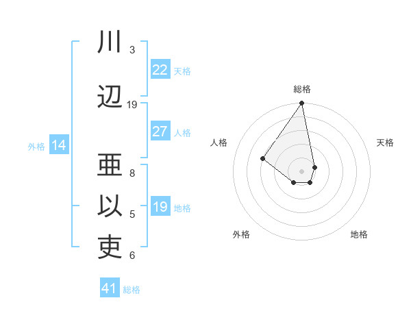 川辺 亜以吏さんを姓名の画数から五運を鑑定
