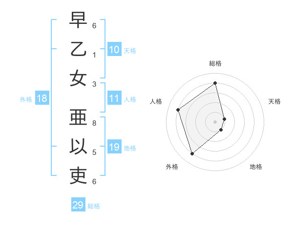早乙女 亜以吏さんを姓名の画数から五運を鑑定