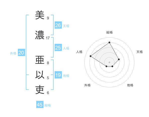 美濃 亜以吏さんを姓名の画数から五運を鑑定