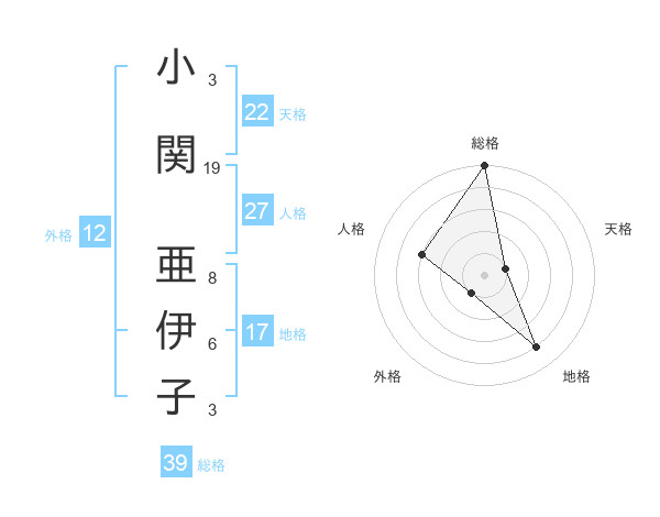 小関 亜伊子さんの総格は39画の5点!