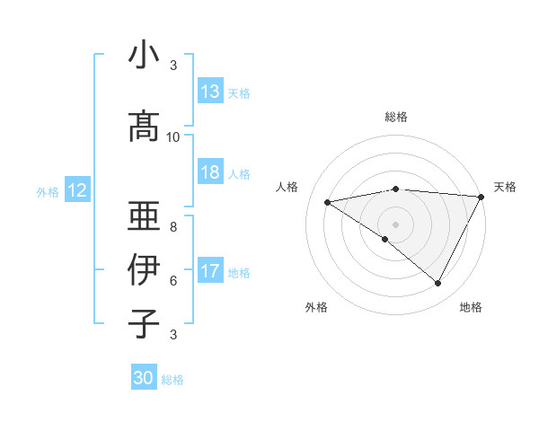 小髙 亜伊子さんの天格は13画の5点!