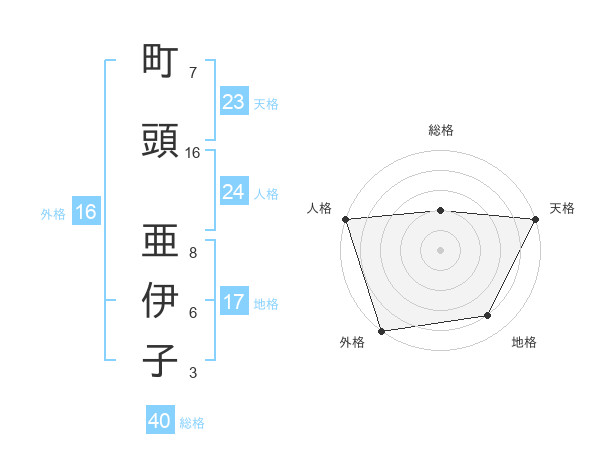 町頭 亜伊子さんを姓名の画数から五運を鑑定