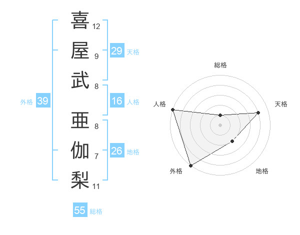 喜屋武 亜伽梨さんの天格は29画の4点!