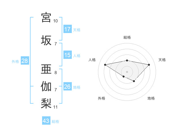 宮坂 亜伽梨さんを姓名の画数から五運を鑑定