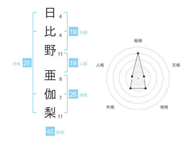 日比野 亜伽梨さんを姓名の画数から五運を鑑定