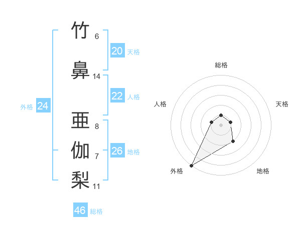 竹鼻 亜伽梨さんの総格は46画の1点!