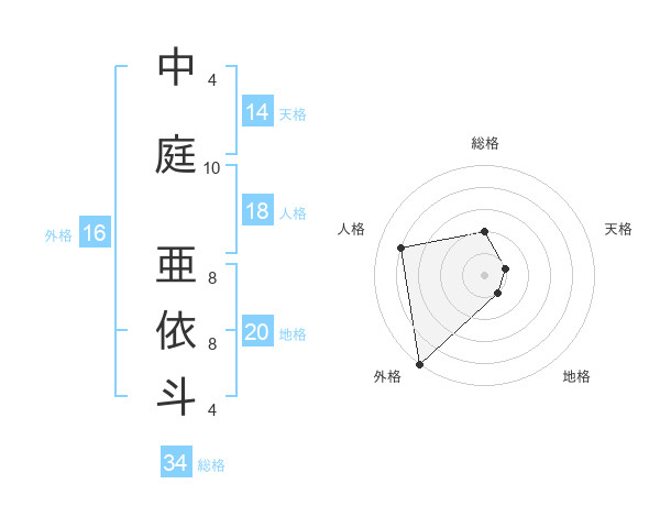 中庭 亜依斗さんの総格は34画の2点!