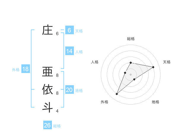 庄 亜依斗さんを姓名の画数から五運を鑑定