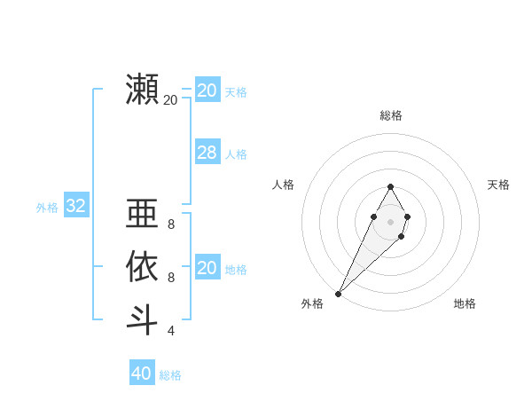 瀬 亜依斗さんの地格は20画の1点!