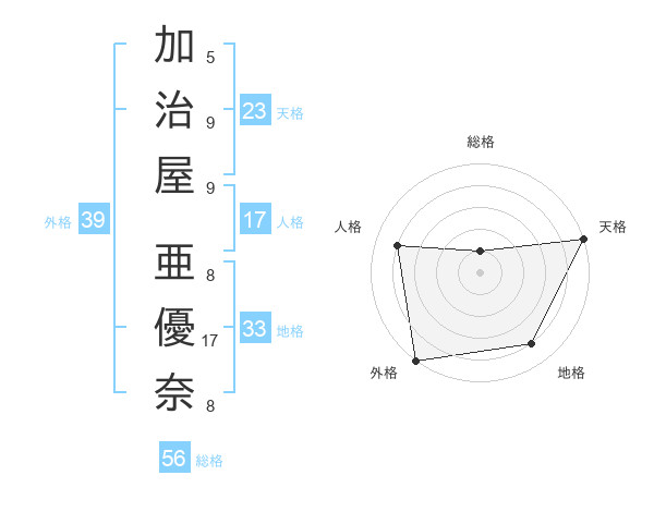 加治屋 亜優奈さんを姓名の画数から五運を鑑定