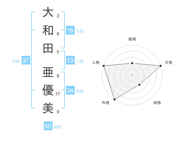 大和田 亜優美さんを姓名の画数から五運を鑑定