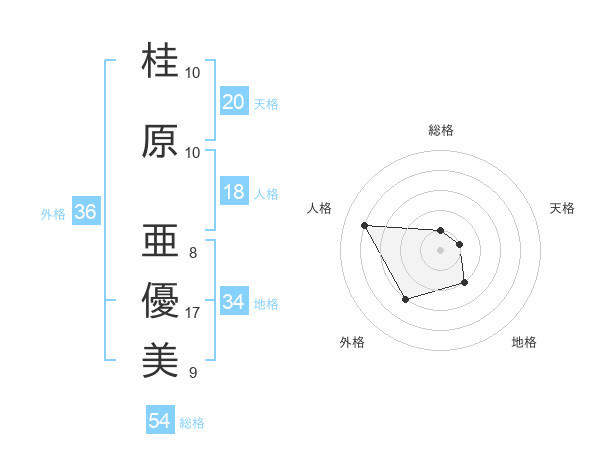 桂原 亜優美さんの総格は54画の1点