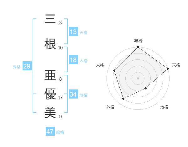 三根 亜優美さんの総格は47画の5点!