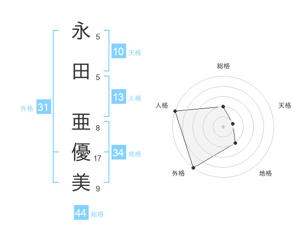 永田 亜優美さんの総格は44画の2点!