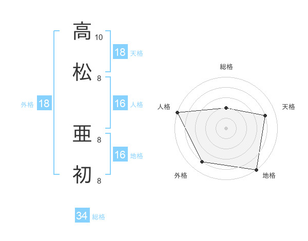 高松 亜初さんの天格は18画の4点!