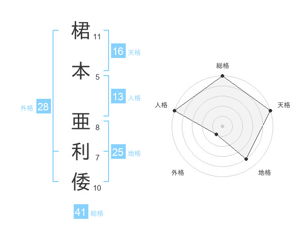 桾本 亜利倭さんを姓名の画数から五運を鑑定