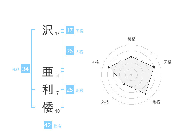 沢 亜利倭さんの天格は17画の4点!