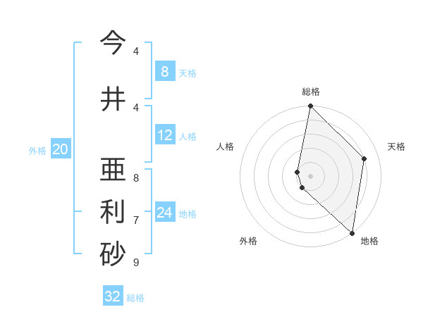 今井 亜利砂さんを姓名の画数から五運を鑑定