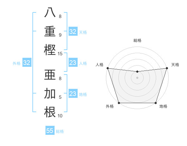 八重樫 亜加根さんの外格は32画の5点!