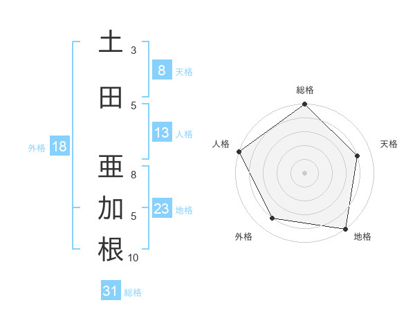 土田 亜加根さんを姓名の画数から五運を鑑定