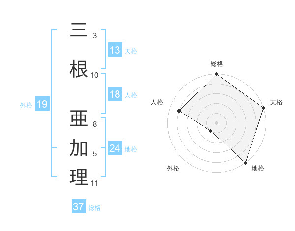 三根 亜加理さんを姓名の画数から五運を鑑定