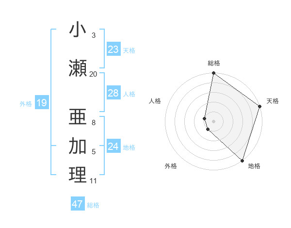 小瀬 亜加理さんを姓名の画数から五運を鑑定