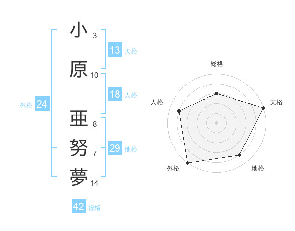 小原 亜努夢さんの天格は13画の5点!