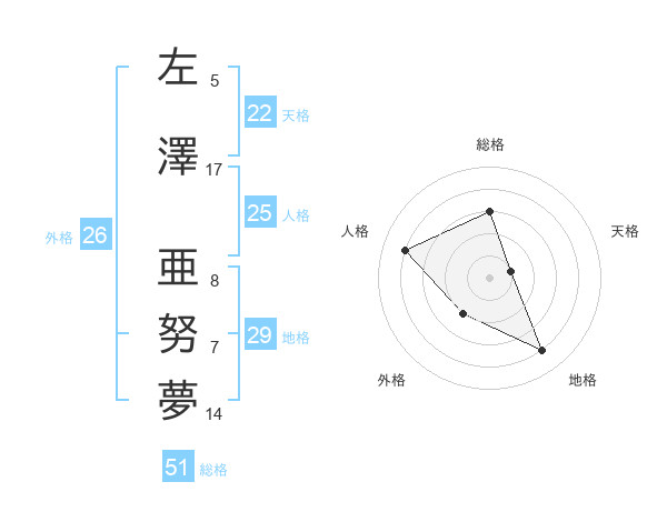 左澤 亜努夢さんを姓名の画数から五運を鑑定