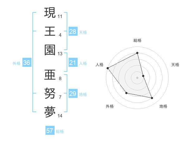 現王園 亜努夢さんを姓名の画数から五運を鑑定