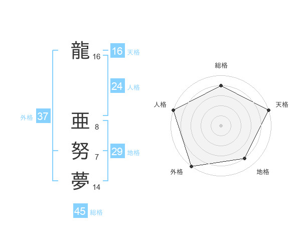 龍 亜努夢さんの総格は45画の4点!