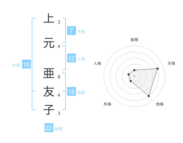 上元 亜友子さんを姓名の画数から五運を鑑定