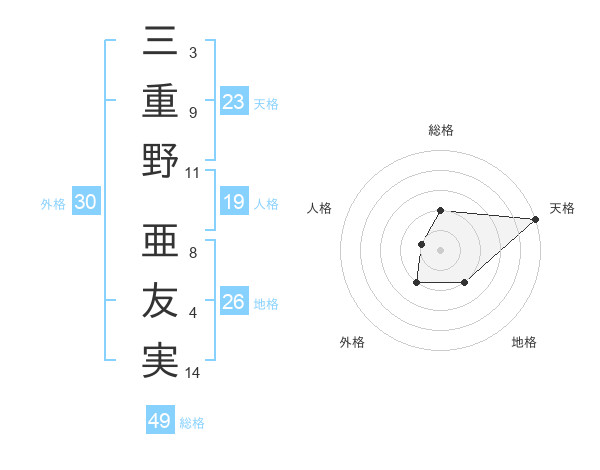 三重野 亜友実さんを姓名の画数から五運を鑑定