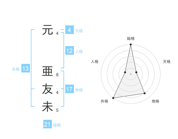 元 亜友未さんの総格は21画の5点!