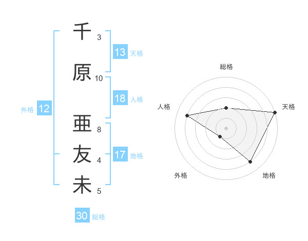 千原 亜友未さんの天格は13画の5点!