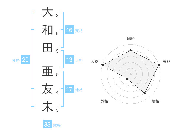 大和田 亜友未さんを姓名の画数から五運を鑑定