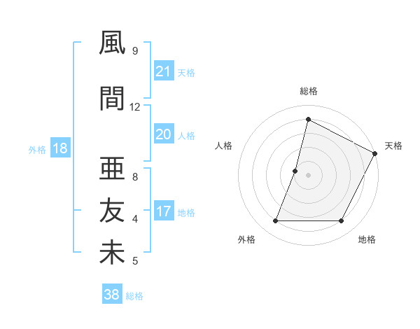 風間 亜友未さんの総格は38画の4点