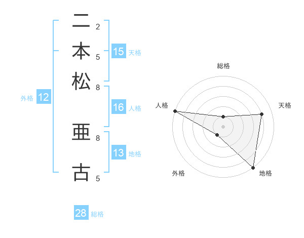 二本松 亜古さんを姓名の画数から五運を鑑定