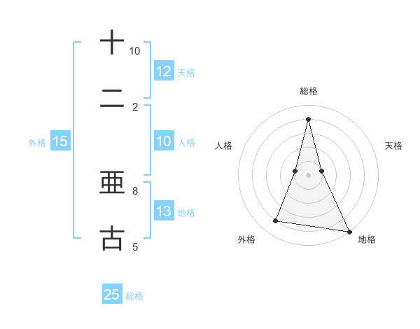 十二 亜古さんの総格は25画の4点!