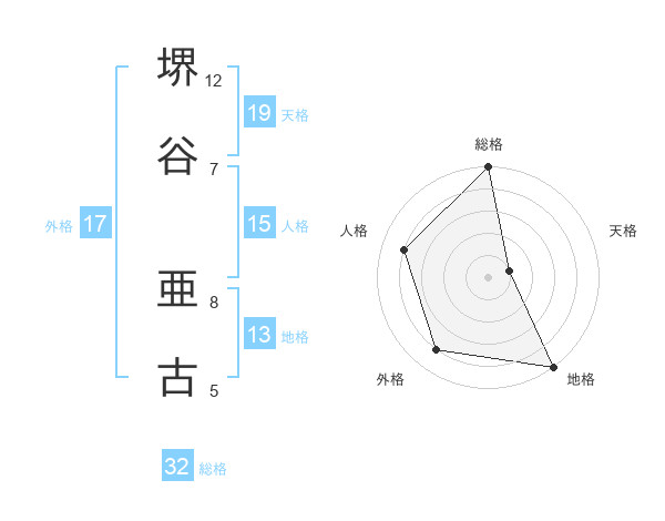 堺谷 亜古さんの総格は32画の5点!