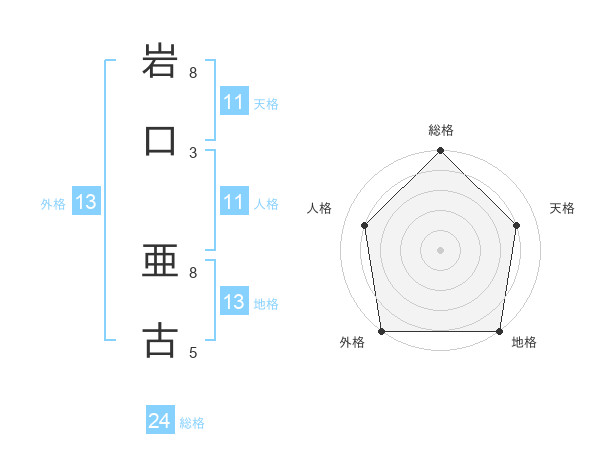 岩口 亜古さんの外格は13画の5点!