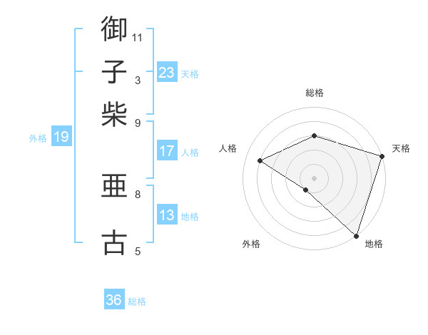 御子柴 亜古さんの総格は36画の3点!