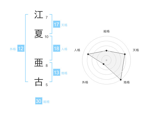 江夏 亜古さんの総格は30画の2点!