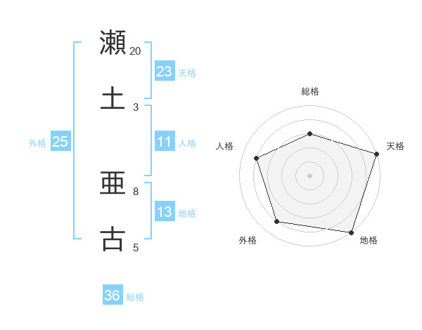 瀬土 亜古さんの天格は23画の5点!