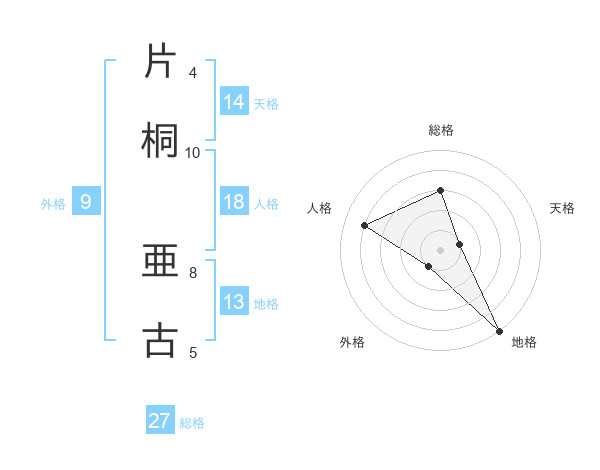 片桐 亜古さんを姓名の画数から五運を鑑定