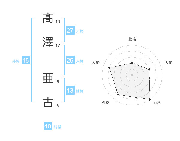 髙澤 亜古さんの地格は13画の5点!