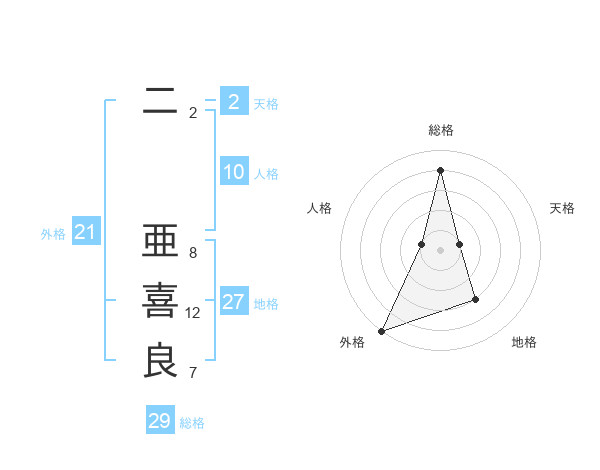 二 亜喜良さんの総格は29画の4点!