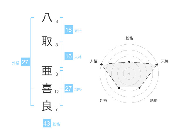 八取 亜喜良さんの天格は16画の5点!
