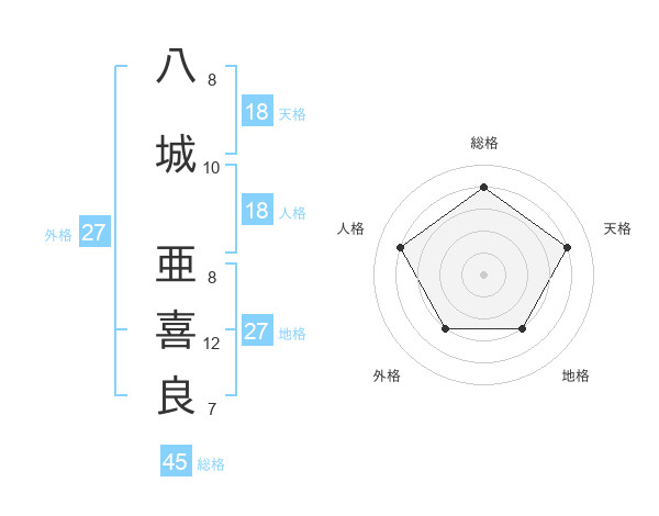八城 亜喜良さんの総格は45画の4点!