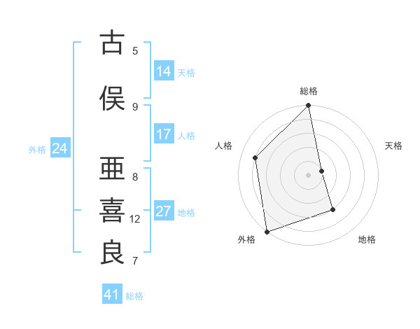 古俣 亜喜良さんを姓名の画数から五運を鑑定